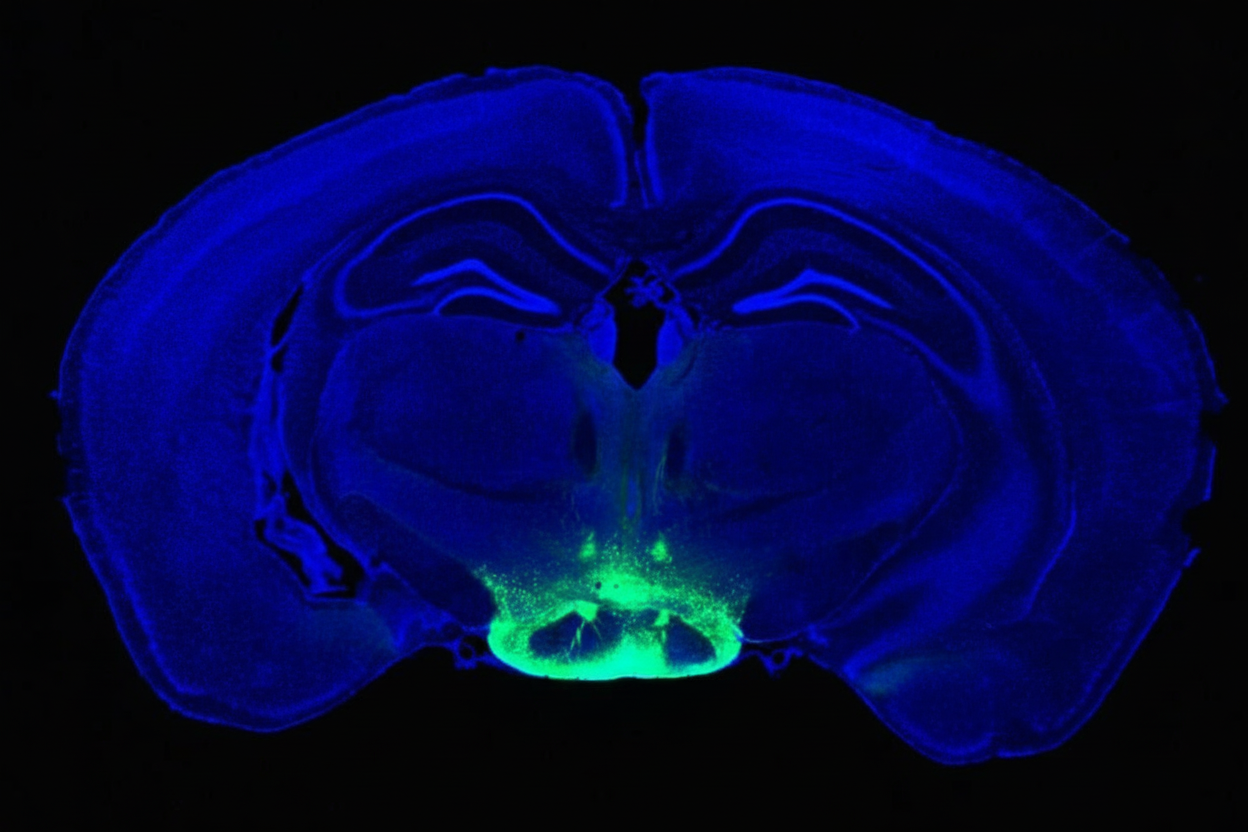 حدد باحثون من معهد ماساتشوستس للتكنولوجيا (MIT) خلايا عصبية في الدماغ قد تُساهم في ظهور بعض الأعراض المبكرة لمرض الزهايمر، مما يجعلها هدفًا واعدًا لتطوير أدوية جديدة محتملة لعلاج هذا المرض. تظهر المنطقة التي تتواجد فيها هذه الخلايا العصبية، في جزء من منطقة ما تحت المهاد يُسمى الجسم الحلمي، باللون الأخضر.