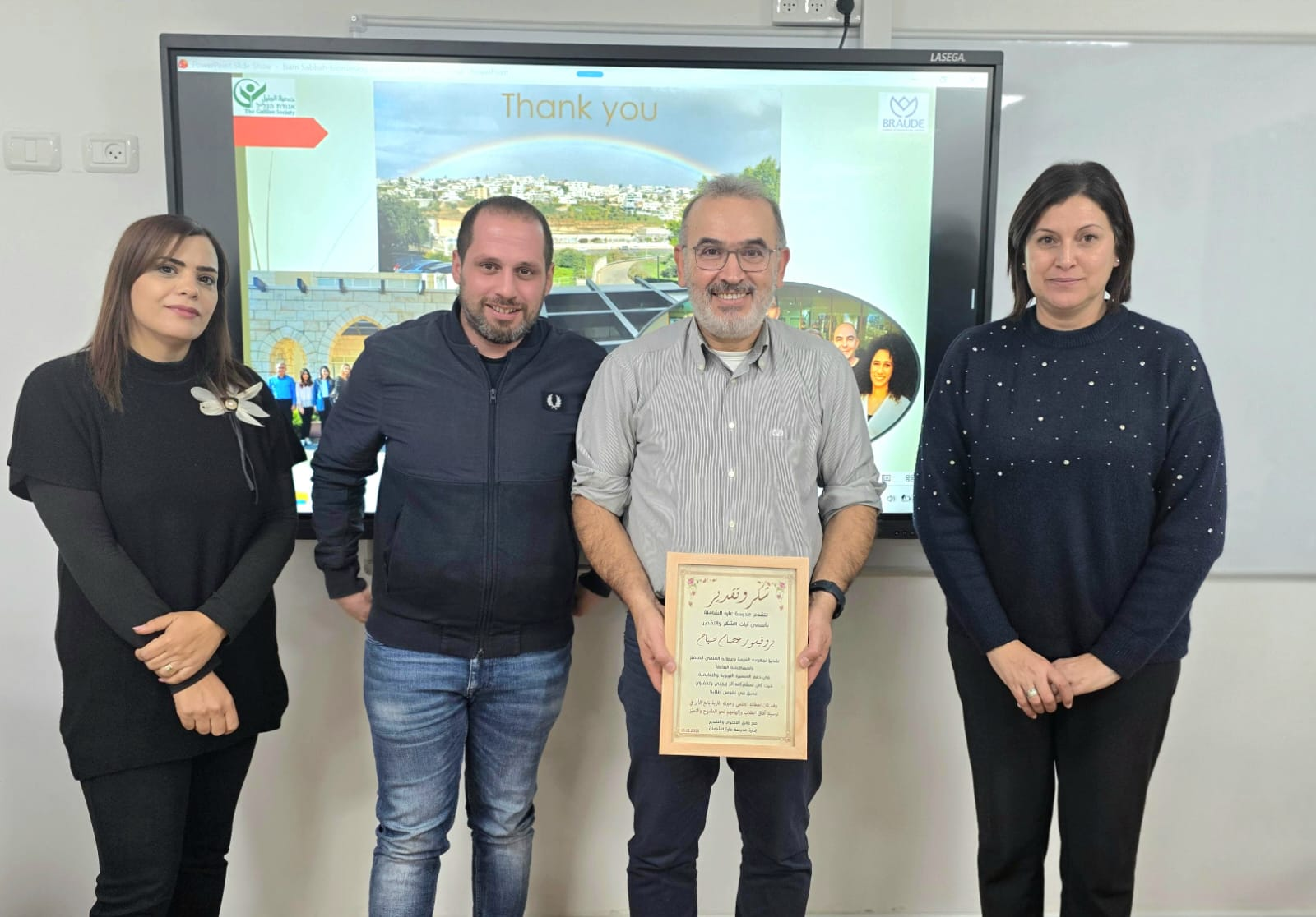وفي ختام اللقاء، عبّرت إدارة المدرسة وطاقمها وطلابها عن شكرهم وتقديرهم للبروفيسور عصام صباح وجمعية المرام للعلوم على هذه المحاضرة القيّمة، وتم تكريمه تقديرًا لعطائه العلمي ومساهمته في دعم المسيرة التربوية والتعليمية.