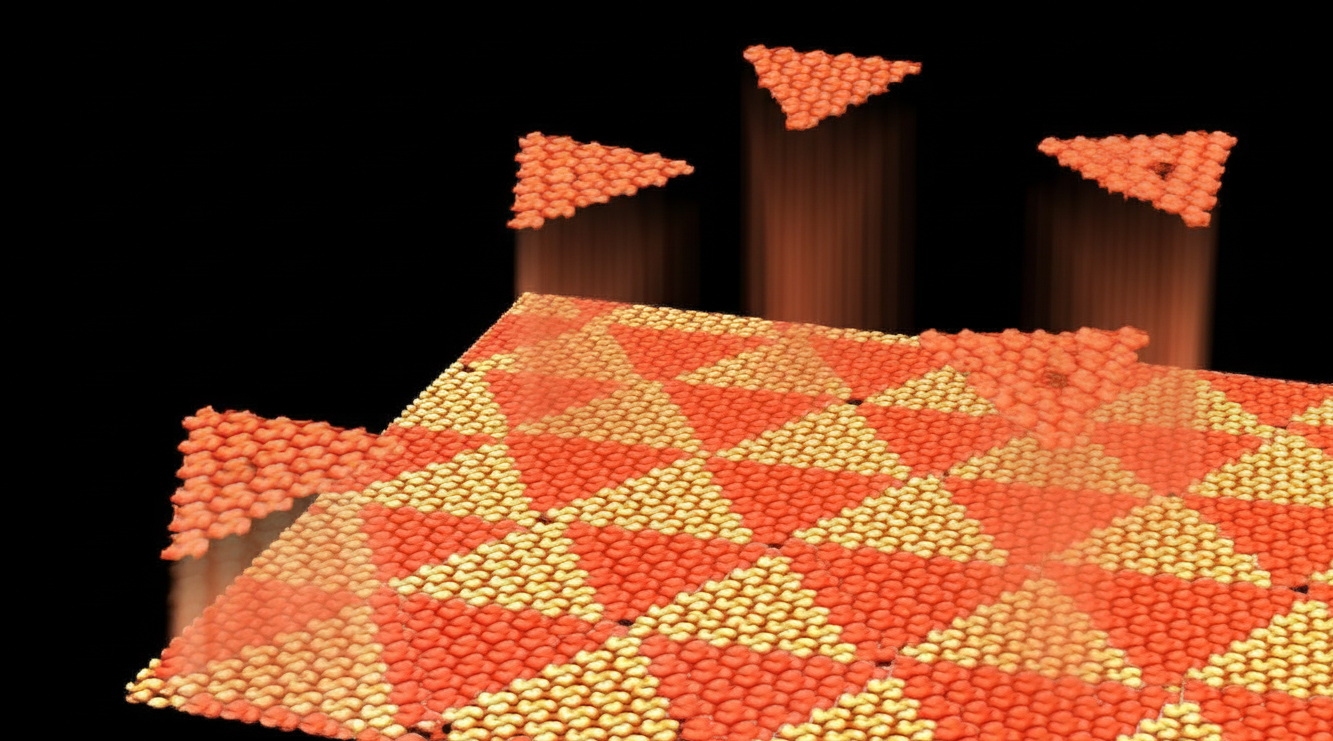 يقول إرنست، من المختبرات الفيدرالية السويسرية لعلوم وتكنولوجيا المواد في دوبندورف: "لقد رأينا شيئًا مُدهشًا ومُذهلًا للغاية". شكّلت الجزيئات المُترسبة لوالب ثلاثية الأذرع، تجمّعت معًا في مثلثات ذات أحجام مُختلفة قليلًا. في كل تجربة من حوالي 100 تجربة، اكتشف الباحثون تسلسلات مثلثية جديدة لم يبدُ أنها تتكرر أبدًا. أمضوا سنواتٍ في دراسة هذه الصور مُحاولين فهمها.