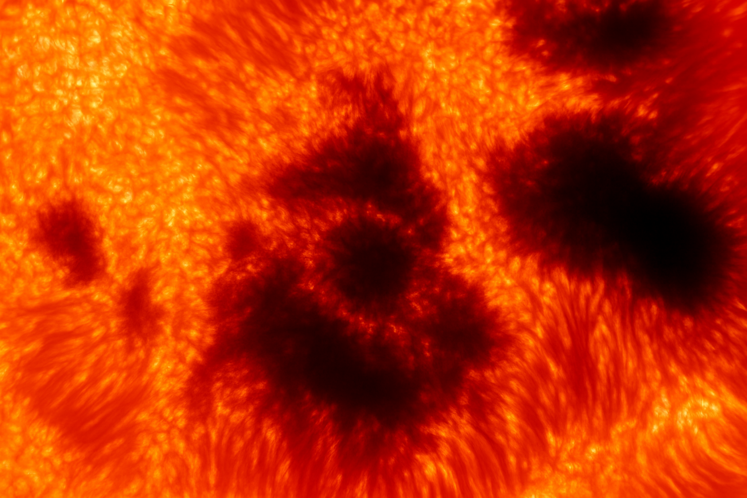 تُظهِر أول صورة عامة لجهاز VTF أيضًا إحدى البقع الشمسية دائمة التغير على نجمنا، والتي ترتبط بمجالات مغناطيسية قوية نسبيًا تمنع البلازما من الهروب من باطن النجم. ولتسجيل الحدث، اعتمد جهاز VTF على ضوء الشمس بطول موجي يبلغ 588.9 نانومتر، كما يُصوِّر شبه ظل البقعة الشمسية فوق منطقة تبلغ مساحتها حوالي 15535 ميلًا مربعًا.
